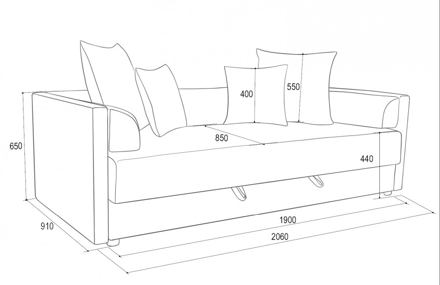 - Чехол дивана: тканевый, несъемный