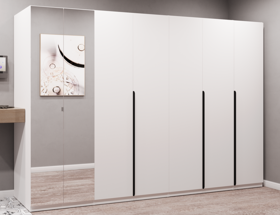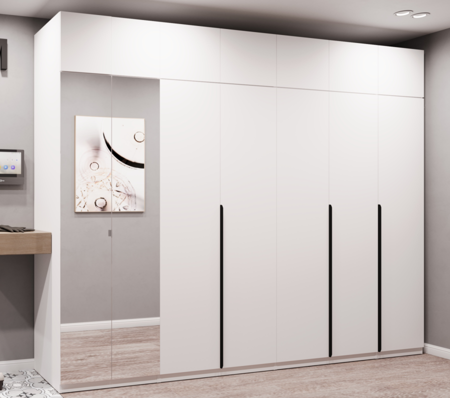 - Металлические ручки на фасадах не подвержены истиранию и прослужат долгое время даже при ежедневном пользовании гардеробной.