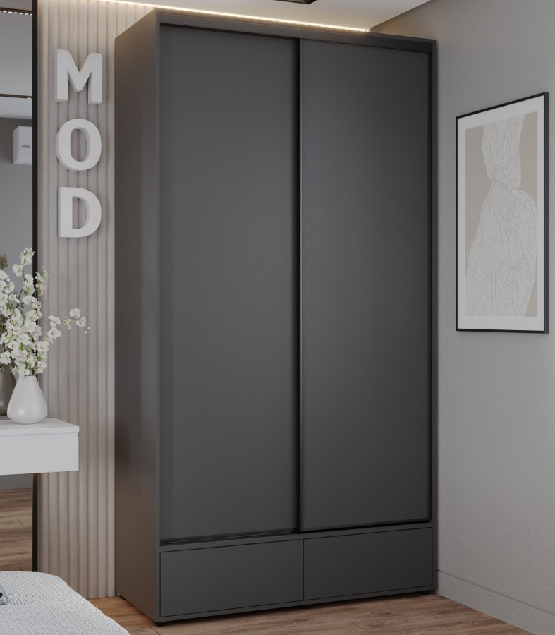 Ещё одной особенностью шкафов-купе MOD будет использование на дверях стильного металлического узкого профиля, подобранного под декор шкафа.