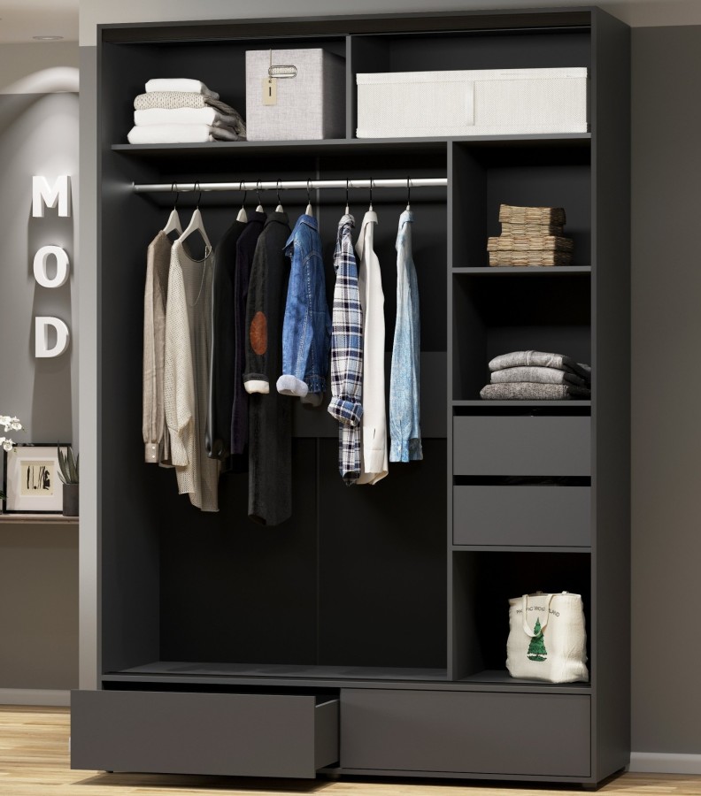 Шкафы-купе MOD оснащены всем необходимым наполнением для размещения и хранения вещей.