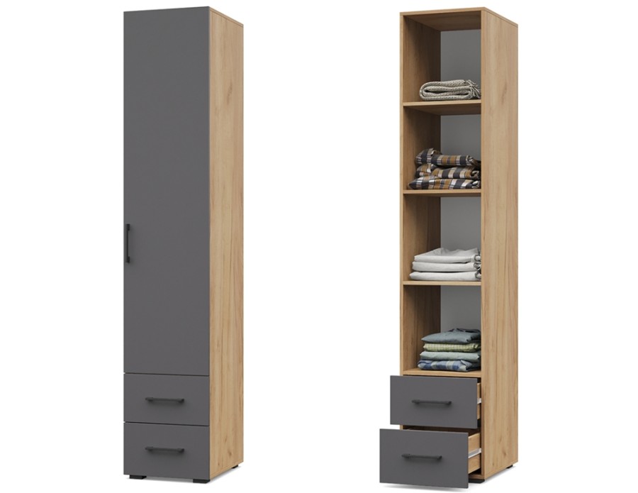 Шкаф-пенал обладает прекрасной вместительностью, быстро собирается и доступен в разных цветах: Дуб золотой/Графит, Ясень Анкор темный/Ясень Анкор светлый, Кашемир, Дуб серый/Белый, что позволяет выбрать подходящий вариант под Ваш интерьер.