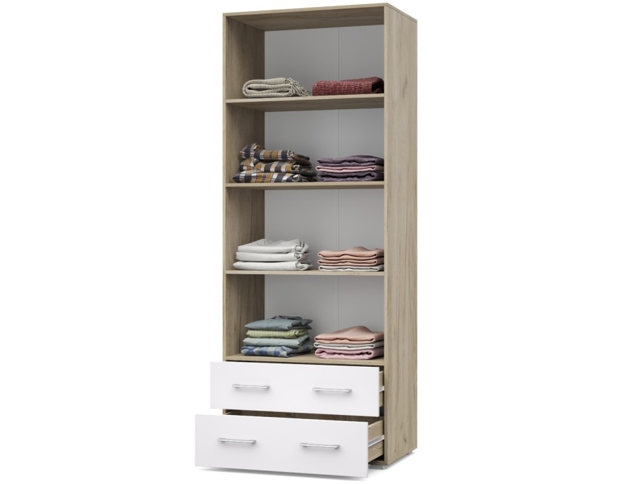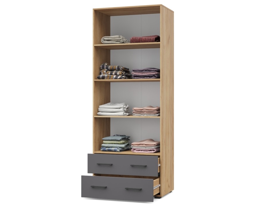 Ева Е23 от Модериум — это двухстворчатый шкаф с выдвижными ящиками для хранения одежды, белья из модульной серии Ева. Доступен в разных цветах: Дуб золотой/Графит, Ясень Анкор темный/Ясень Анкор светлый, Кашемир, Дуб серый/Белый, что позволяет выбрать подходящий вариант под Ваш интерьер.