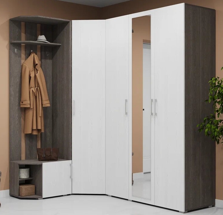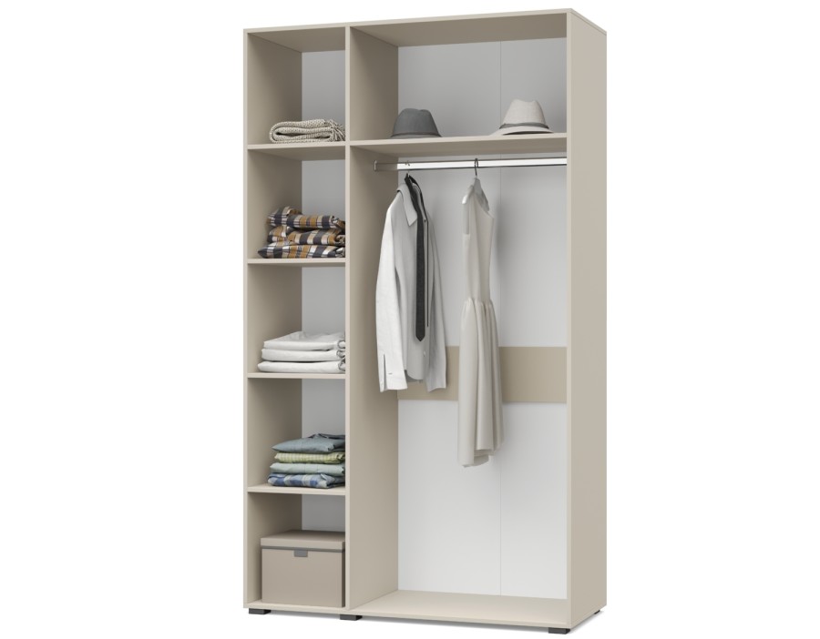 - Шкаф оснащен стационарной металлической штангой, полками, зеркалом.