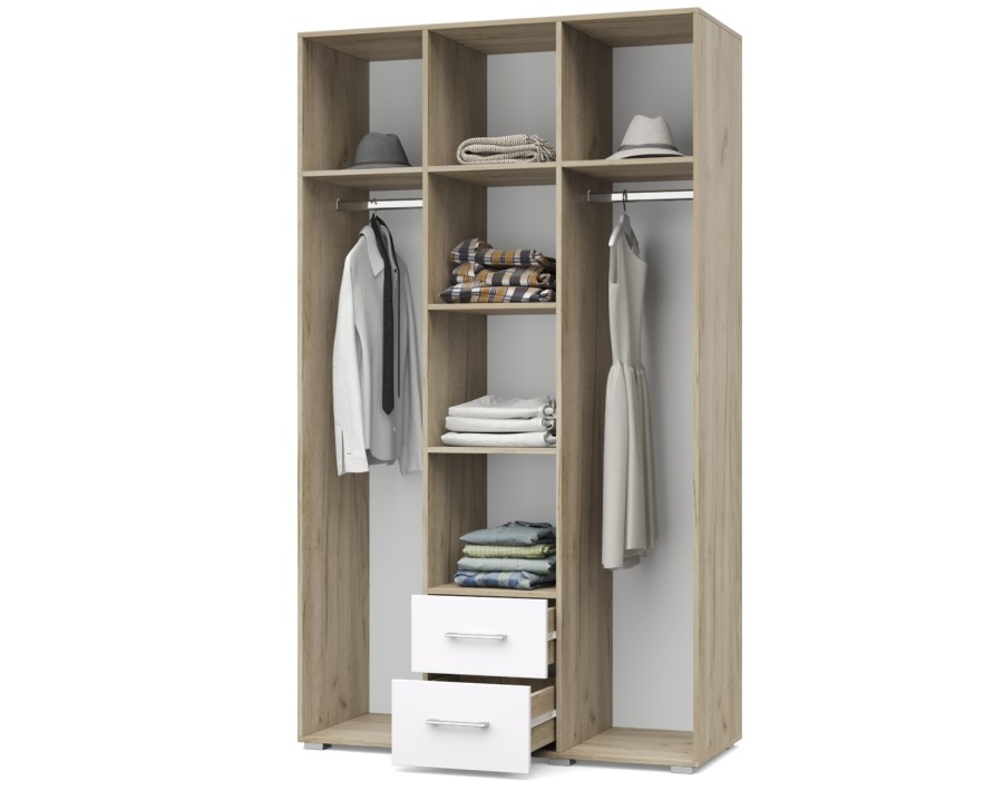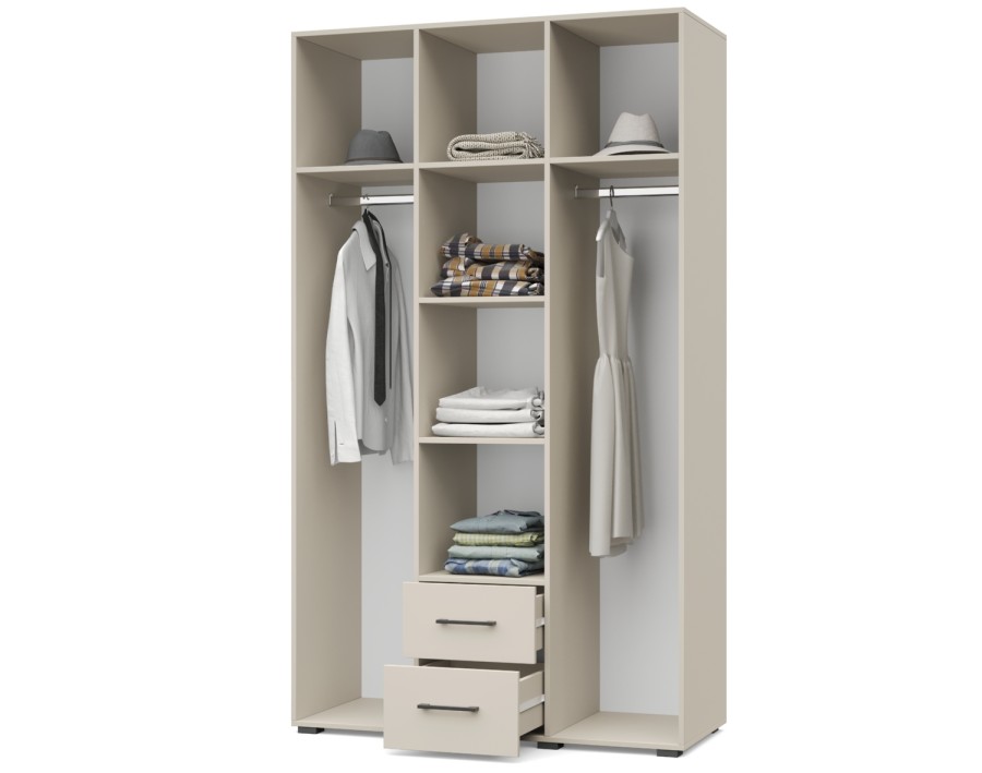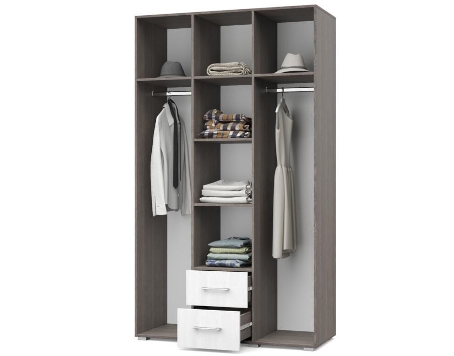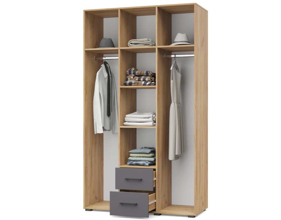 Ева Е34 от Модериум — это трехстворчатый шкаф с полками, стационарной штангой, выдвижными ящиками для хранения одежды, белья из модульной серии Ева. Доступен в разных цветах: Дуб золотой/Графит, Ясень Анкор темный/Ясень Анкор светлый, Кашемир, Дуб серый/Белый, что позволяет выбрать подходящий вариант под Ваш интерьер.