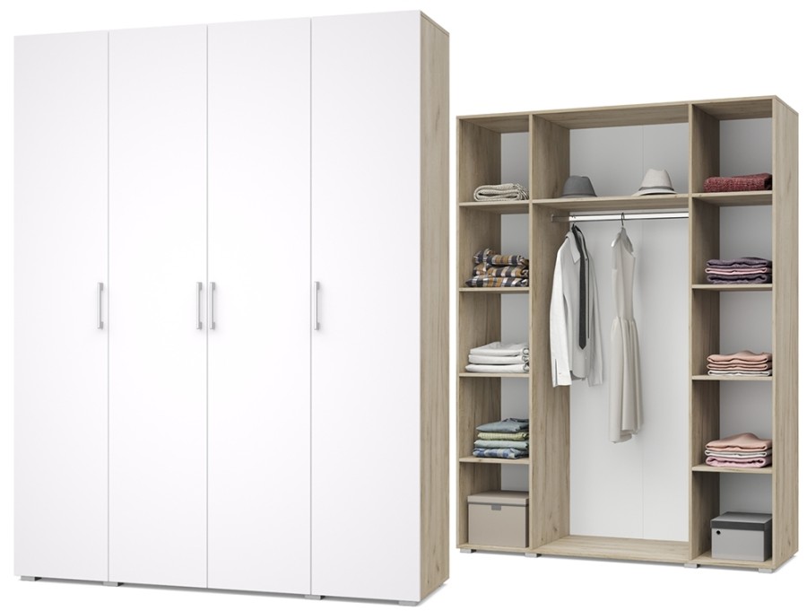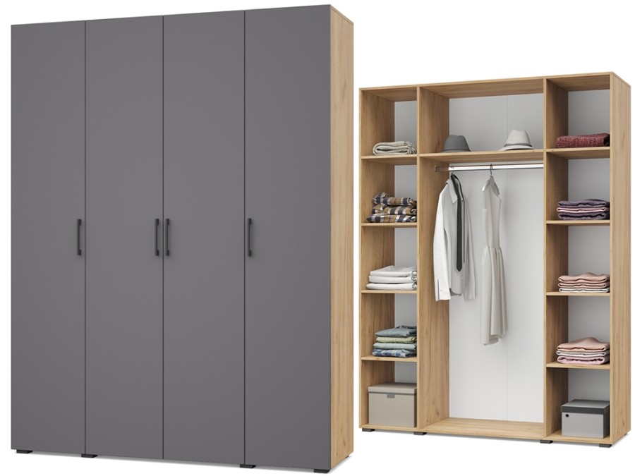 Ева Е40/Е41 от Модериум — это четырехстворчатый шкаф с полками, стационарной штангой для хранения одежды, белья из модульной серии Ева. Доступен в разных цветах: Дуб золотой/Графит, Ясень Анкор темный/Ясень Анкор светлый, Кашемир, Дуб серый/Белый, что позволяет выбрать подходящий вариант под Ваш интерьер.