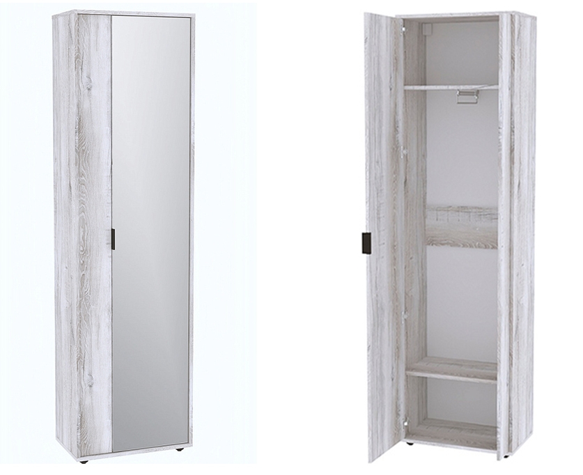 Распашной шкаф с зеркалом во весь рост «Флекс» 71 компактный и в то же время вместительный. Эргономика его внутреннего пространства позволяет аккуратно разместить одежду на плечиках на выдвижной штанге.