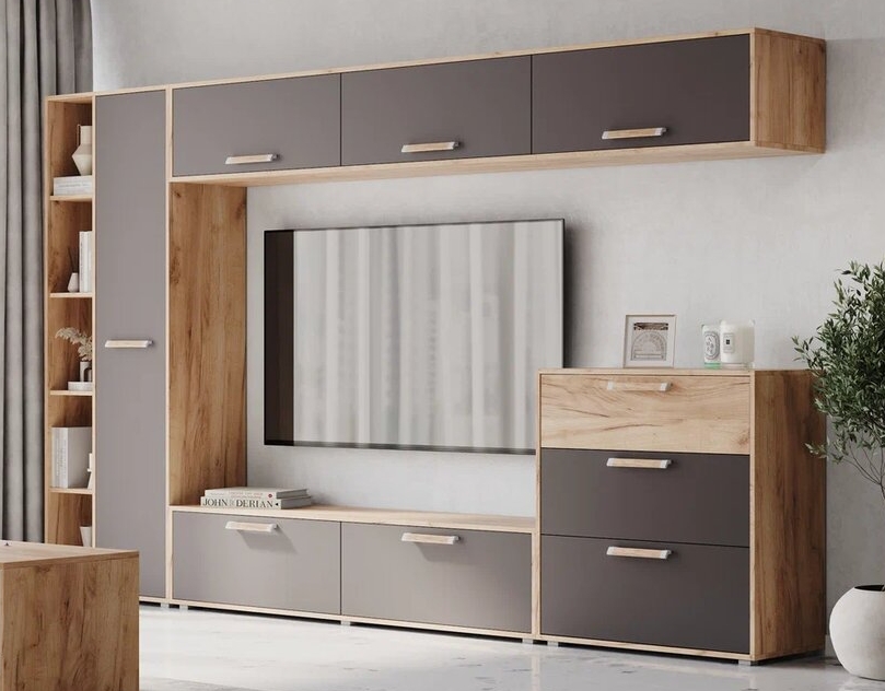 - Шкаф оснащен открытой и закрытой нишей с полками.