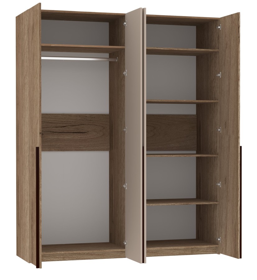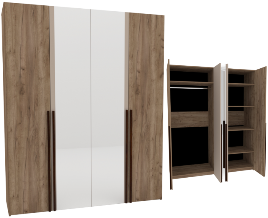 Четырехдверный шкаф для одежды и белья с зеркалами — находка для спальни любых габаритов. Продуманное внутреннее наполнение шкафа делает его поистине универсальным. Шкаф оснащен отделениями для хранения белья с регулируемыми по высоте полками и отделением для одежды со стационарной штангой.