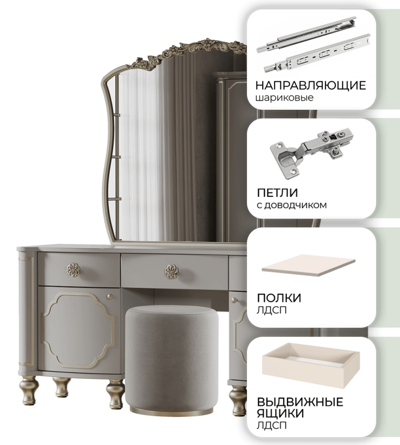 «Мария» Арида Туалетный стол с зеркалом и пуфом