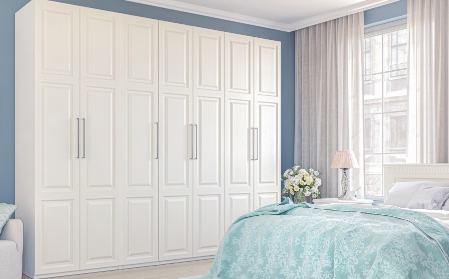 - Вместительные гардеробные шкафы снабжены доводчиками для плавного закрывания.