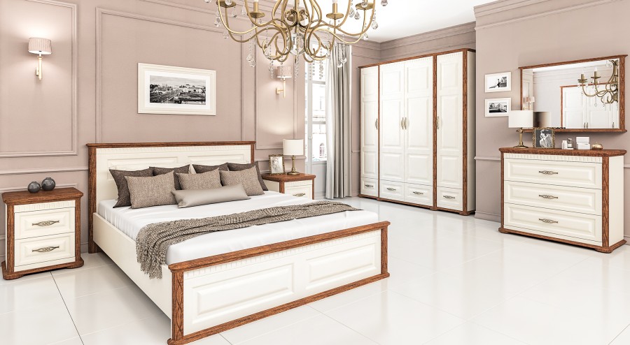 Коллекция Марсель - спальный гарнитур и гостиная, выполненные в приятных тонах с сочетанием древесной структуры Дуба кантри и нежного кремового оттенка.