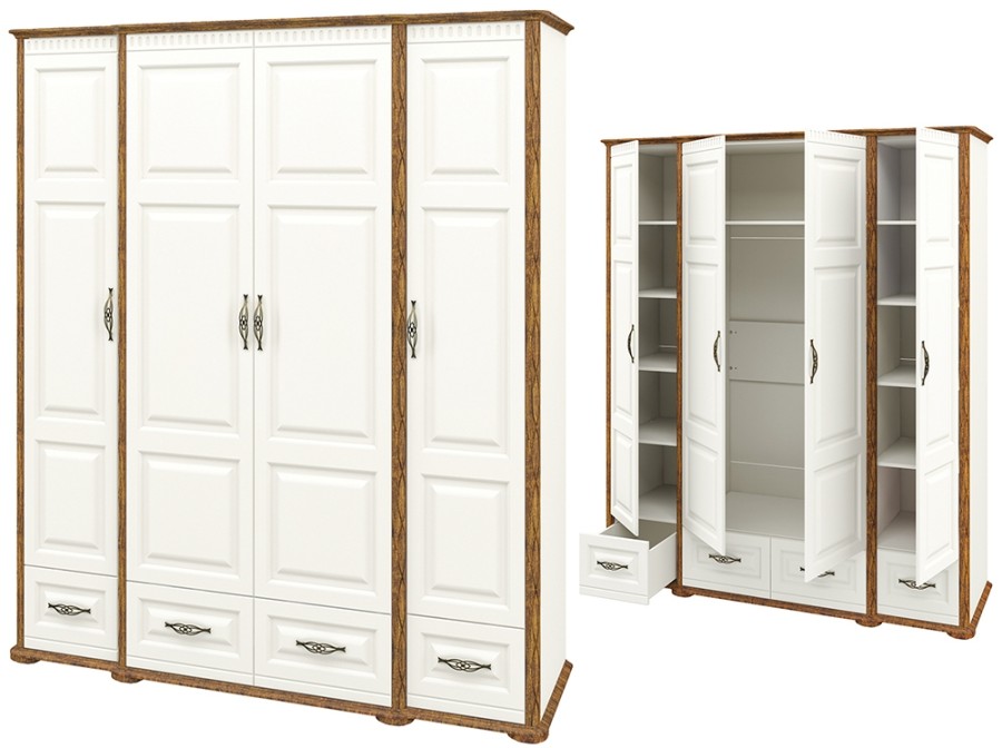 «Марсель» Неман Шкаф 4-х створчатый с ящиками для одежды МН-126-03