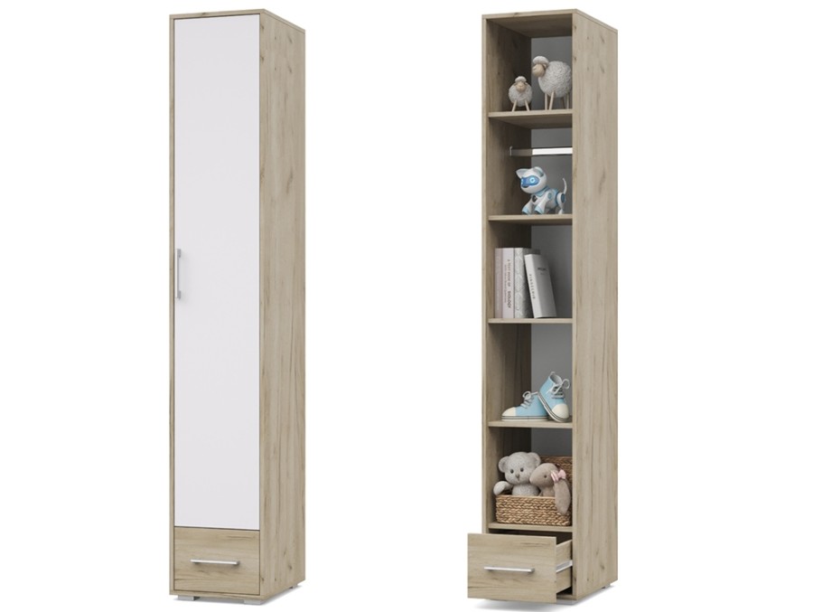 Шкаф-пенал обладает прекрасной вместительностью, быстро собирается и доступен в разных цветах: Ясень Анкор темный/Ясень Анкор светлый, Дуб серый/Белый, что позволяет выбрать подходящий вариант под Ваш интерьер.