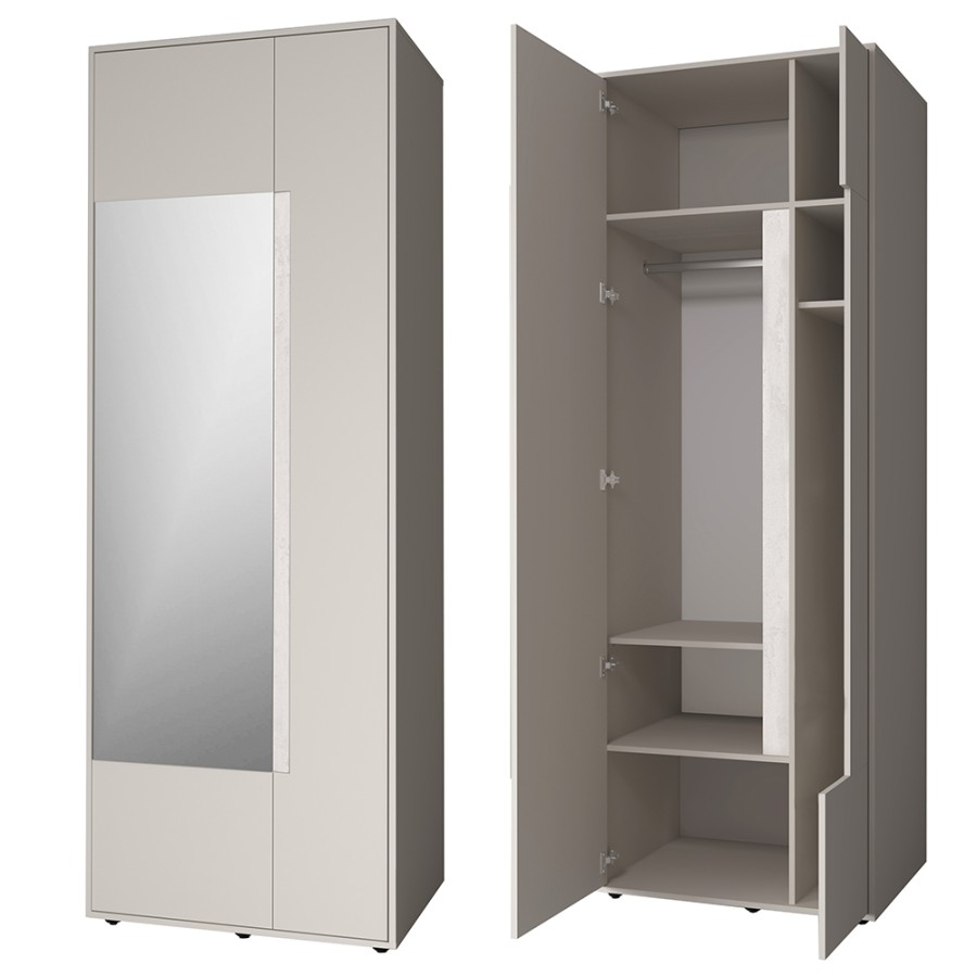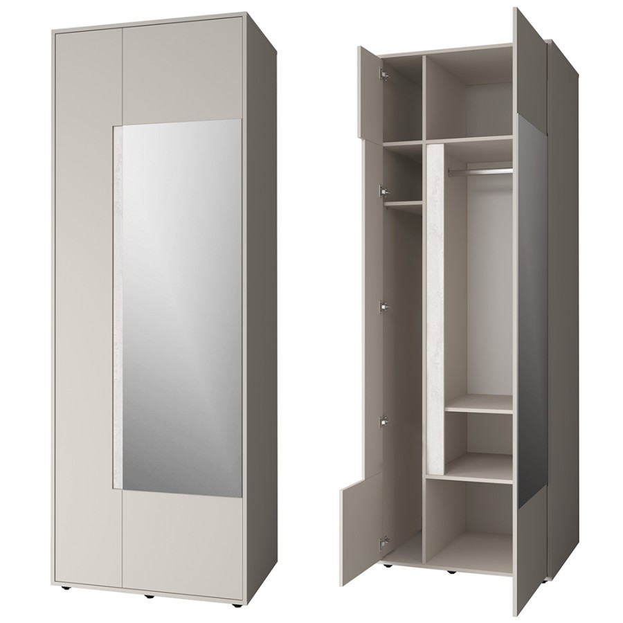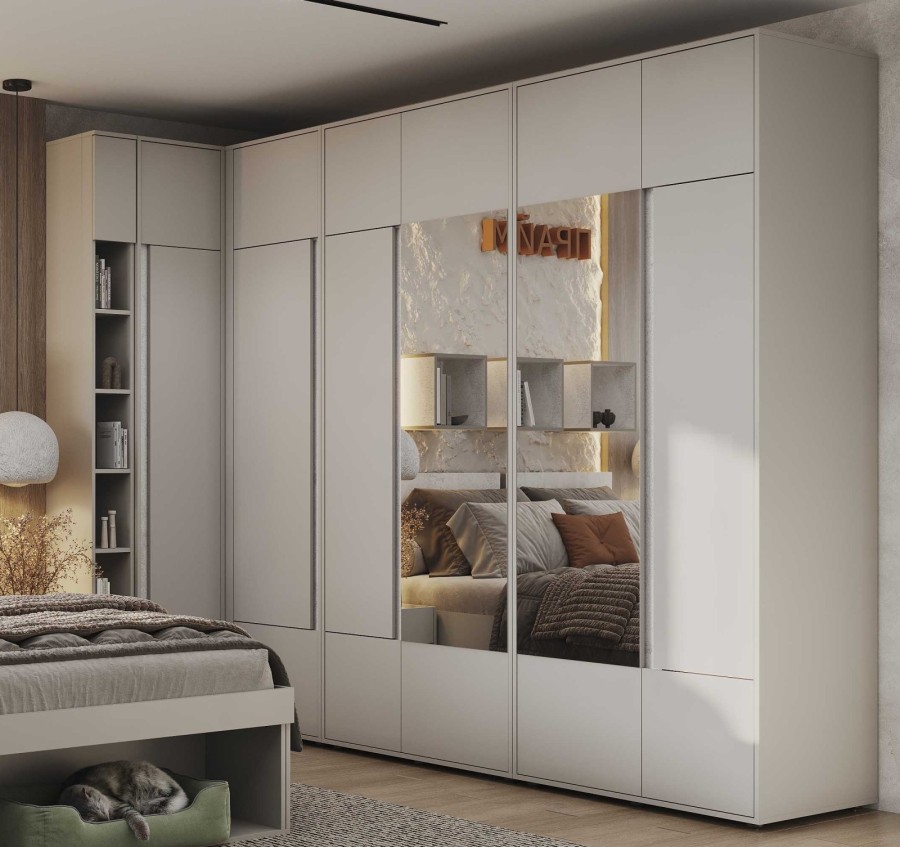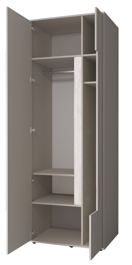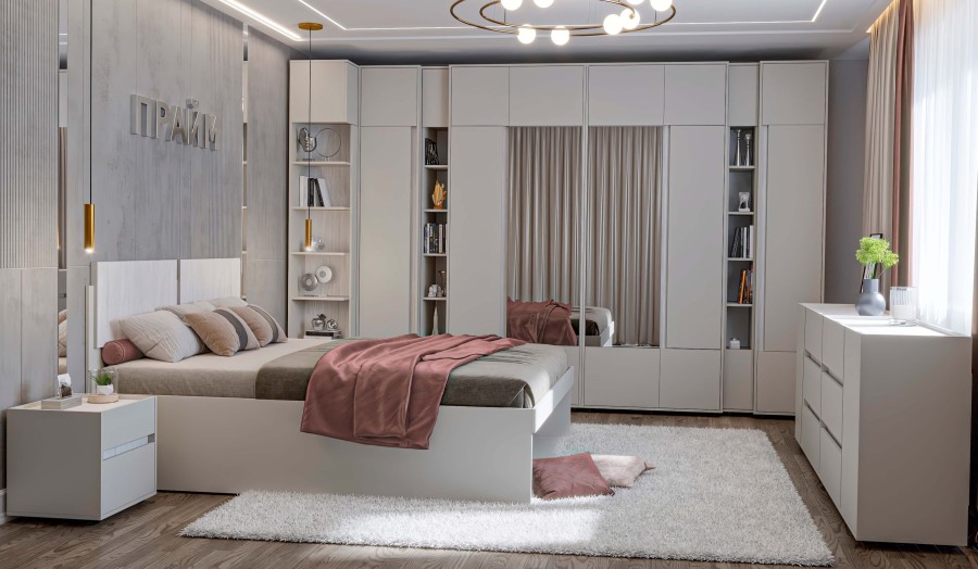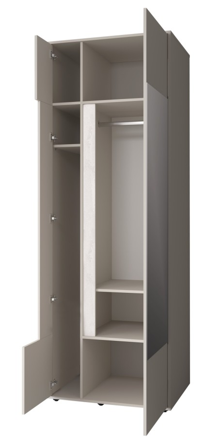 Шкаф гармонично сочетается с другими модулями коллекции «Прайм», создавая единую стилистическую композицию.