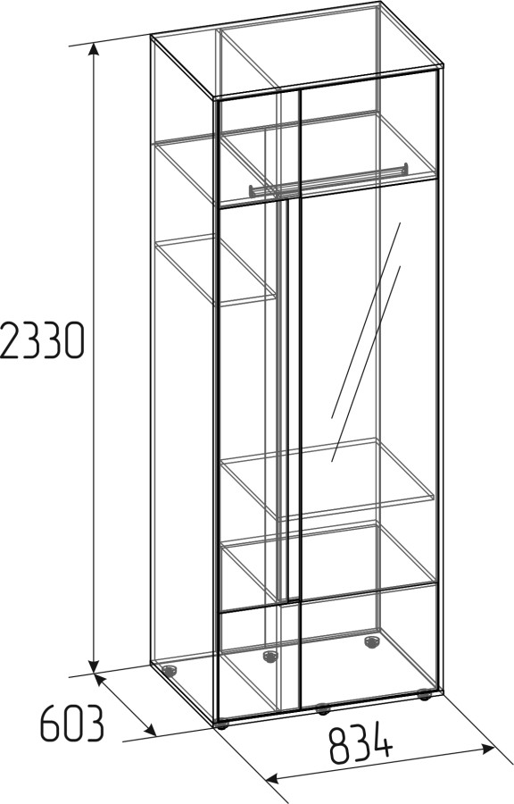 Двухдверный шкаф «Прайм» 63 оснащен стационарной штангой и полками - это практичный шкаф, в котором можно использовать не только для хранения одежды, но и для хранения высоких предметов: для гладильной доски или стремянки.