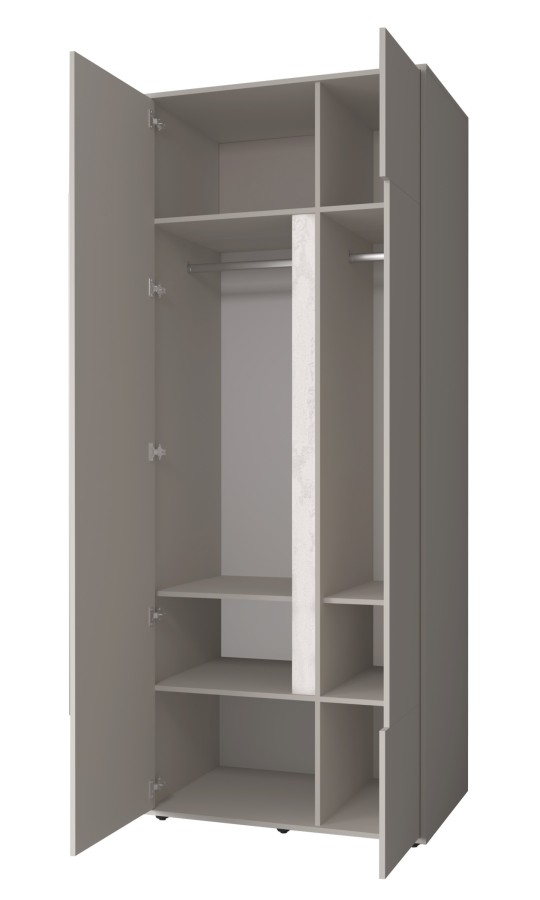 Двухдверный шкаф «Прайм» 64 оснащен стационарной штангой во всю ширину шкафа и полками - это практичный шкаф, в котором можно использовать не только для хранения одежды, но и для хранения длинных предметов: полки посередине можно убрать для их размещения.