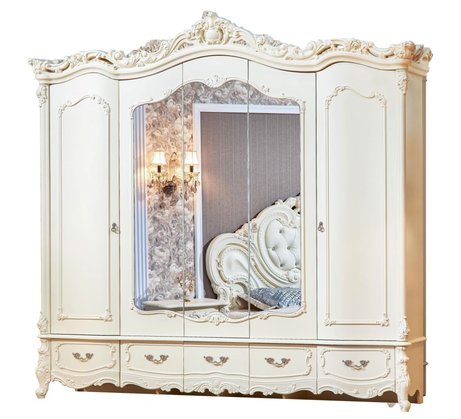 Шкаф 5 дверный "Элиза Люкс" выполненный в классическом стиле. Лепные узоры без патинирования, придают легкость. Удобные выдвижные ящики внизу шкафа создают функциональное удобство.