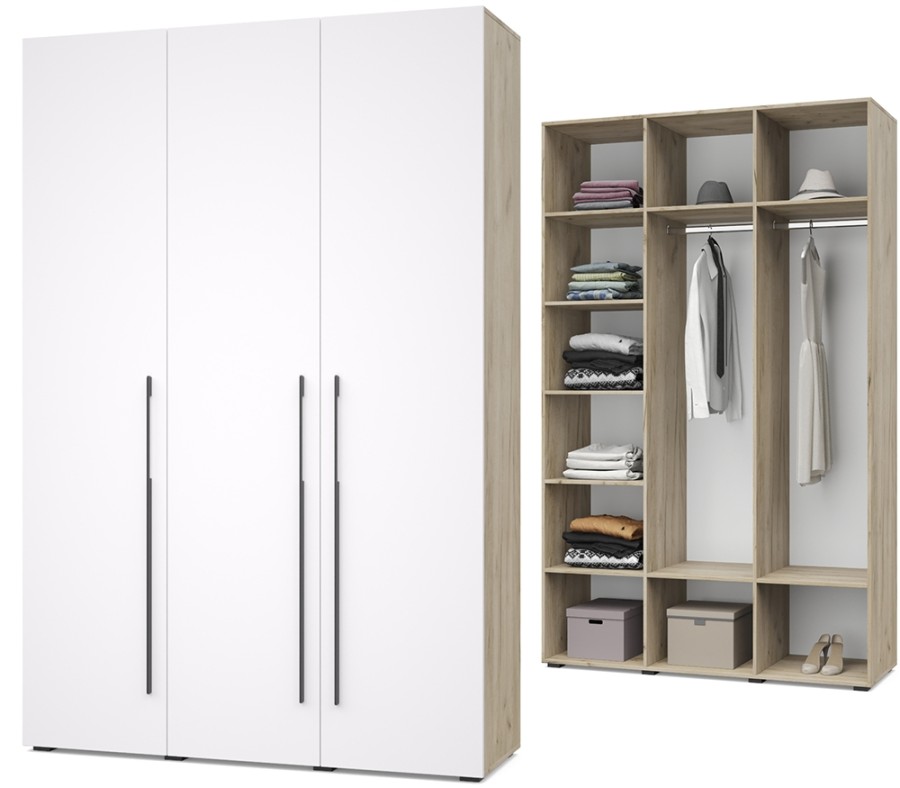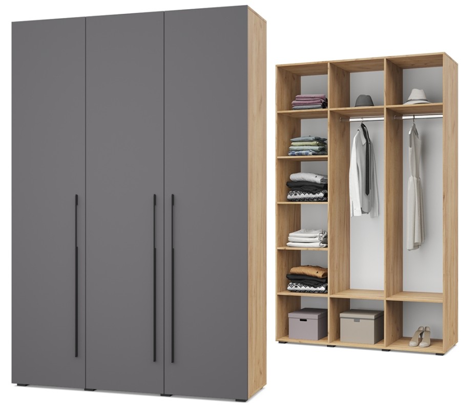 Стоун С31 от Модериум — это трехстворчатый шкаф для одежды из модульной серии Стоун, выполненный в современном стиле с сочетанием древесных и однотонных цветов: Дуб золотой/Графит, Анкор темный/Анкор светлый, Кашемир, Серый дуб/Белый), имеющий размеры (ШхВхГ) 150х230х52 см.