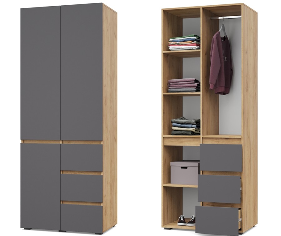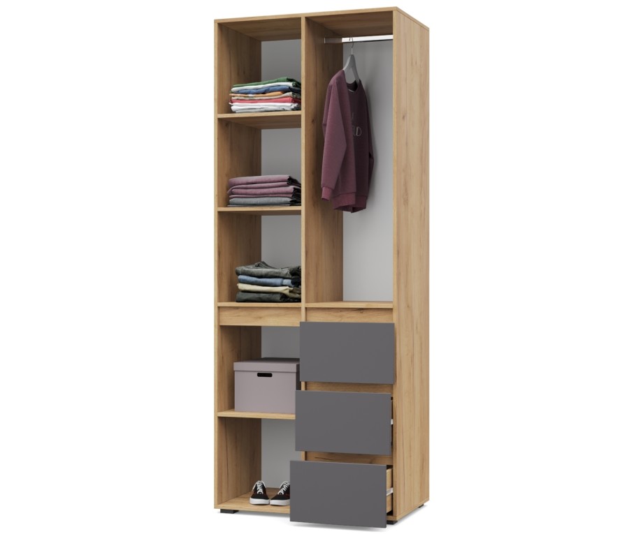 Тифани Т24 от Модериум — это двухстворчатый шкаф с тремя выдвижными ящикамидля хранения одежды, белья из модульной серии Тифани. Доступен в разных цветах: Дуб золотой/Графит, Ясень Анкор темный/Ясень Анкор светлый, Кашемир, Дуб серый/Белый, что позволяет выбрать подходящий вариант под Ваш интерьер.