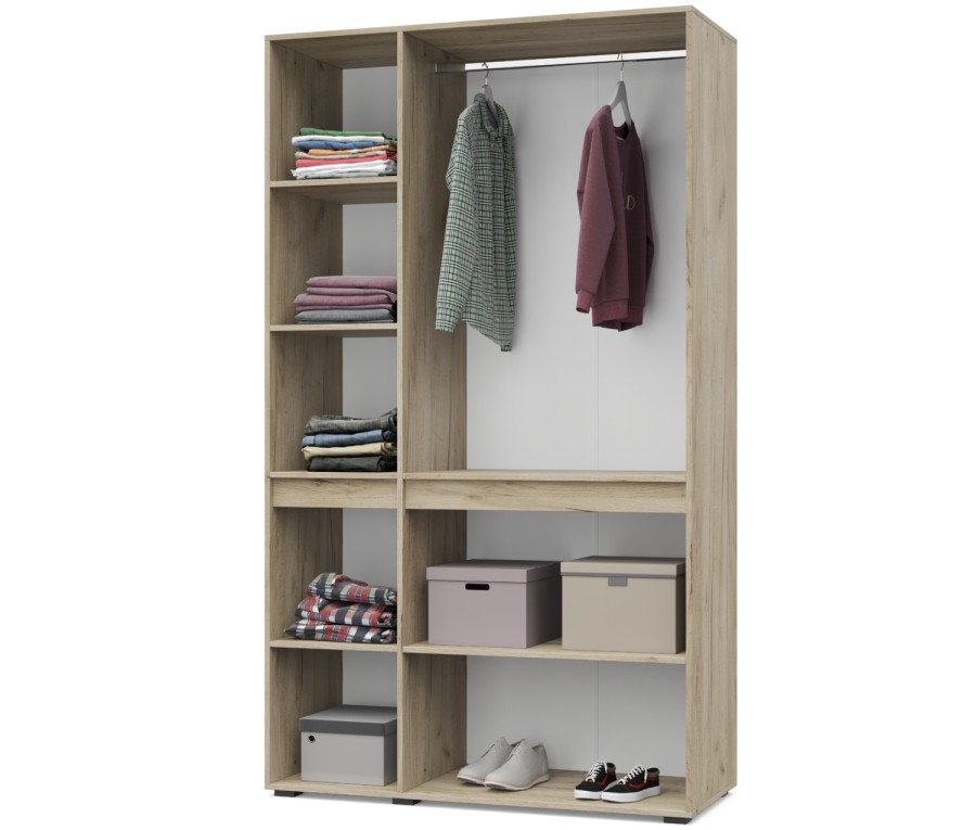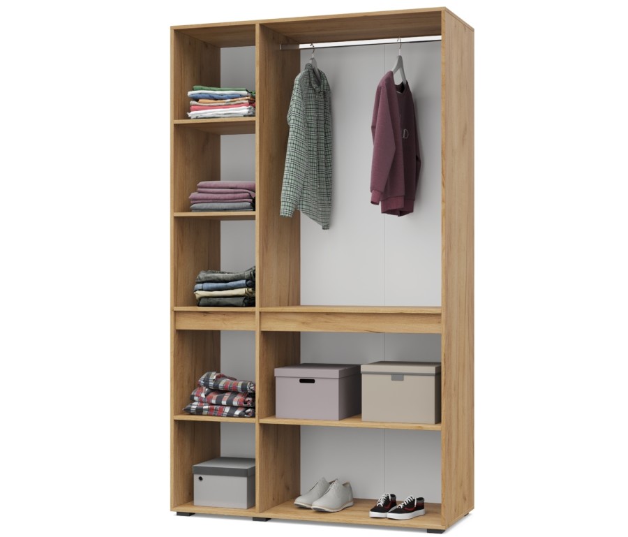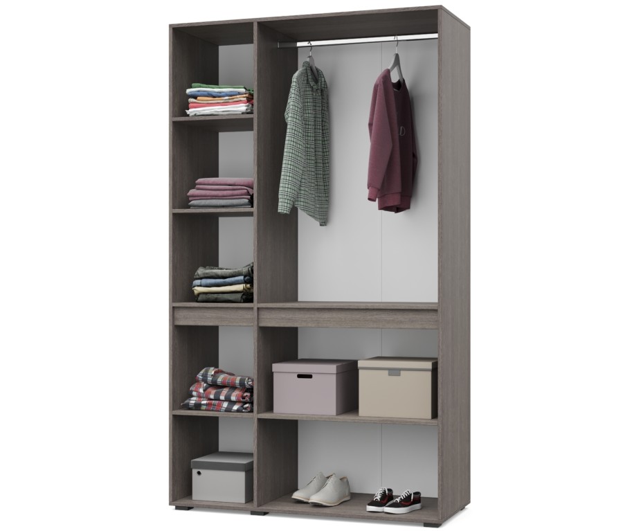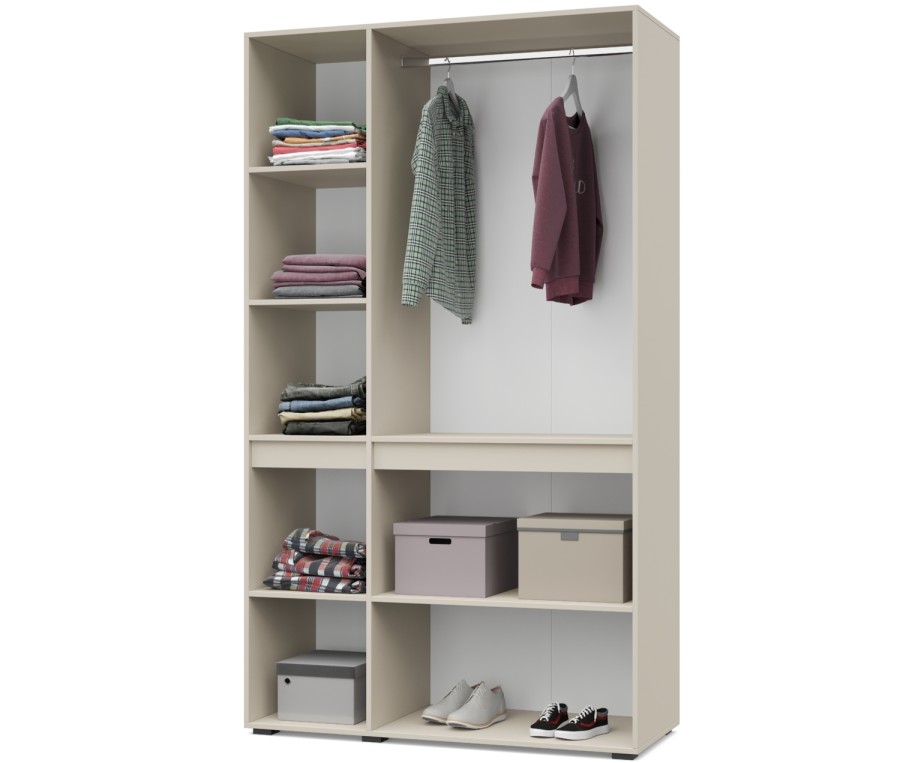 - Шкаф оснащен стационарной металлической штангой, полками.