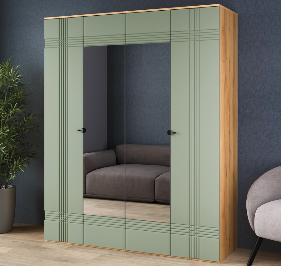 «Вега Саксония» Шкаф 4-х дверный Серо-зелёный