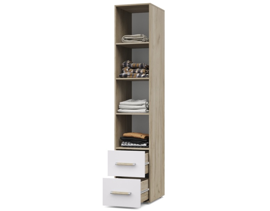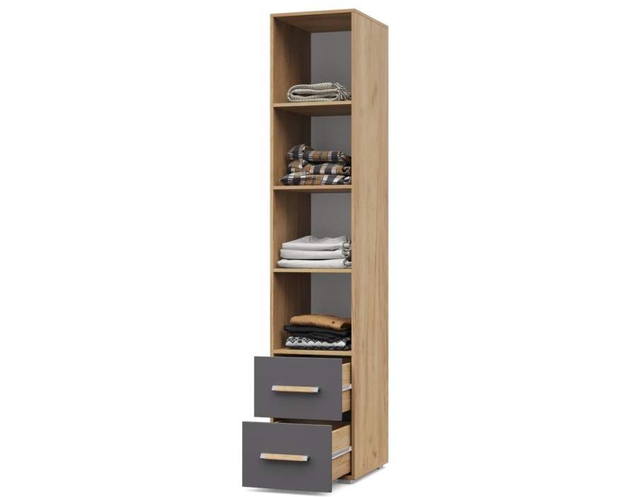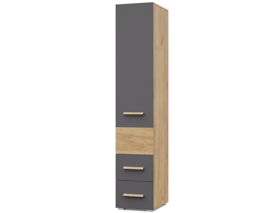 Шкаф-пенал обладает прекрасной вместительностью, быстро собирается и доступен в разных цветах: Дуб золотой/Графит, Дуб серый/Белый, что позволяет выбрать подходящий вариант под Ваш интерьер.