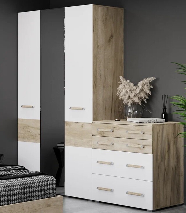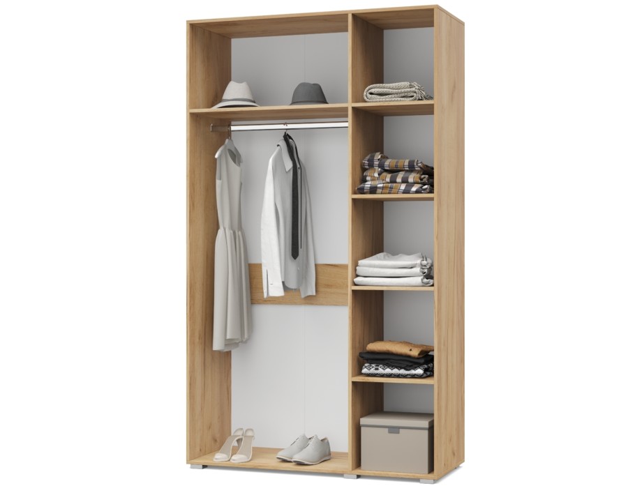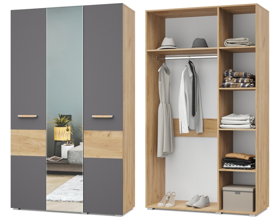 Виора В31 от Модериум — это трехстворчатый шкаф с полками и стационарной штангой для хранения одежды, белья из модульной серии Виора. Доступен в разных цветах: Дуб золотой/Графит, Дуб серый/Белый, что позволяет выбрать подходящий вариант под Ваш интерьер.