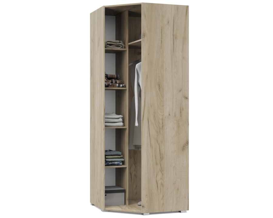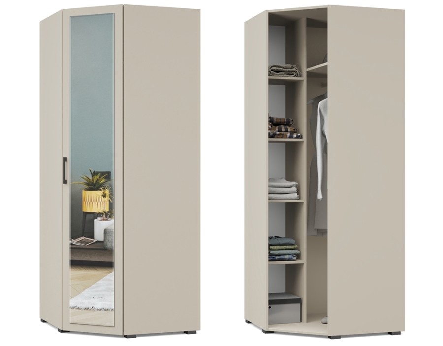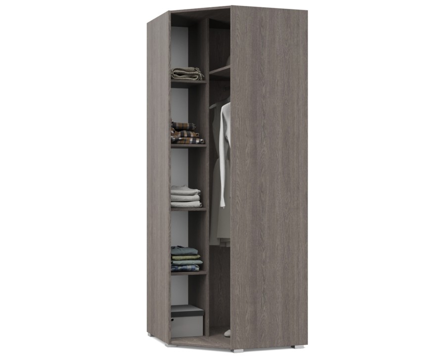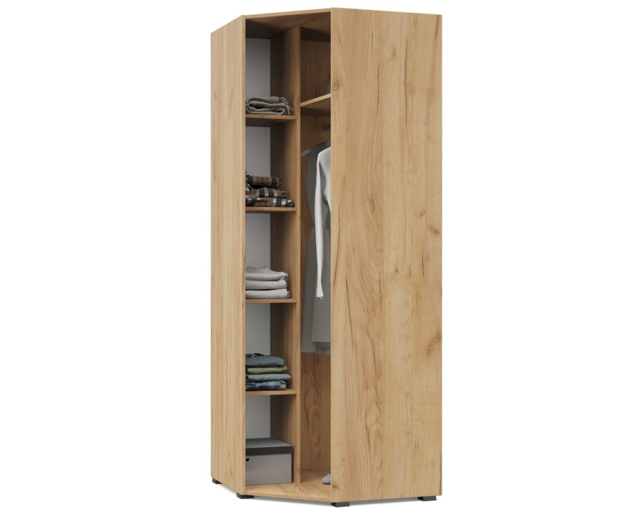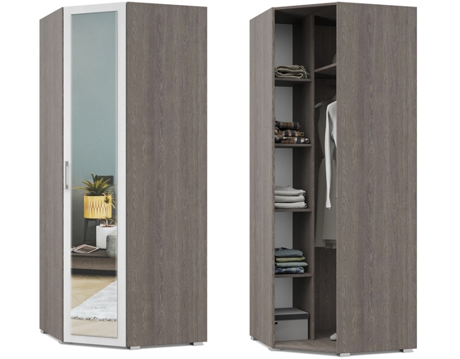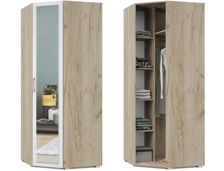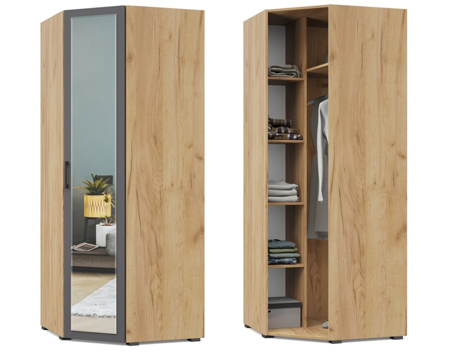Ева Е58 от Модериум — это угловой шкаф с зеркалом, полками и стационарной штангой для хранения одежды, белья из модульной серии Виора. Доступен в разных цветах: Дуб золотой/Графит, Дуб серый/Белый, что позволяет выбрать подходящий вариант под Ваш интерьер.