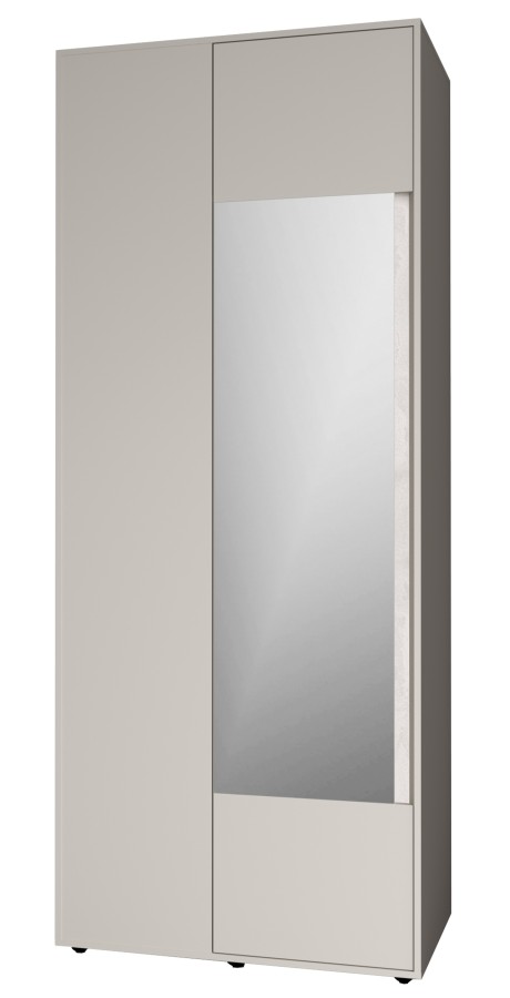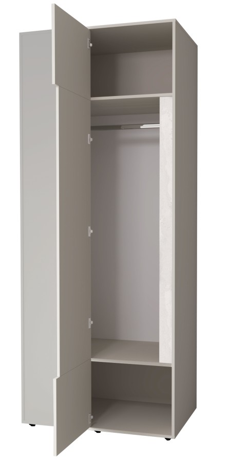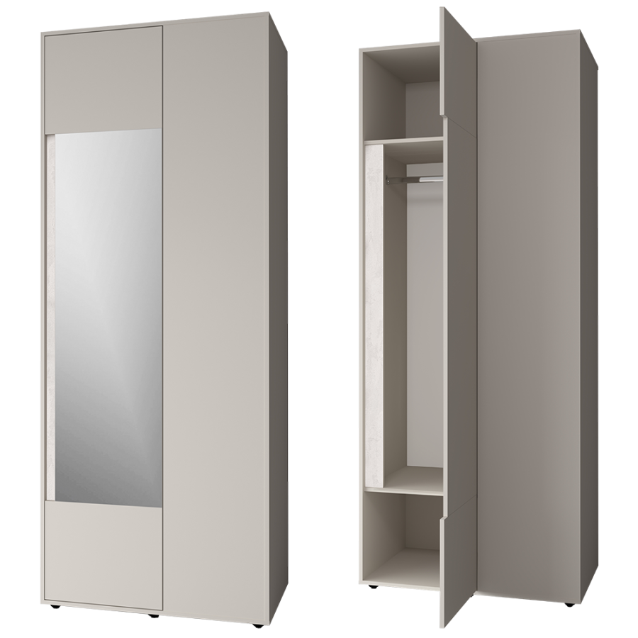 Шкаф гармонично сочетается с другими модулями коллекции «Прайм», создавая единую стилистическую композицию.