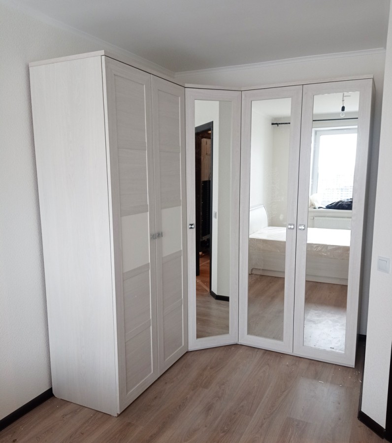 Покупка распашного углового шкафа может стать отличным решением, если вы хотите сэкономить пространство при этом получить вместительный и функциональный модуль.В модульной линейке «Парма Нео» предоставлен выбор фасадов. Глухие фасады просты в уходе, а зеркальные способны преобразить и визуально увеличить пространство комнаты и помогут вам оценить ваш наряд и внешний вид.