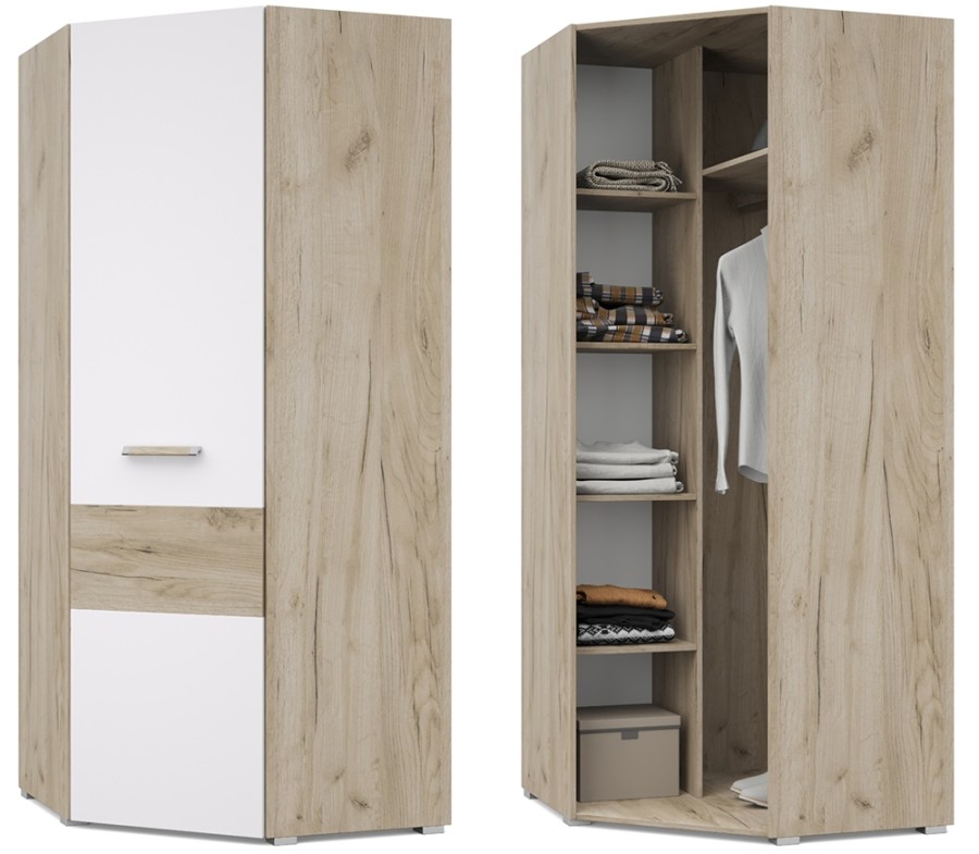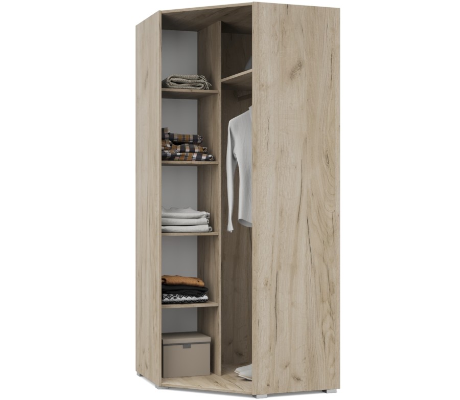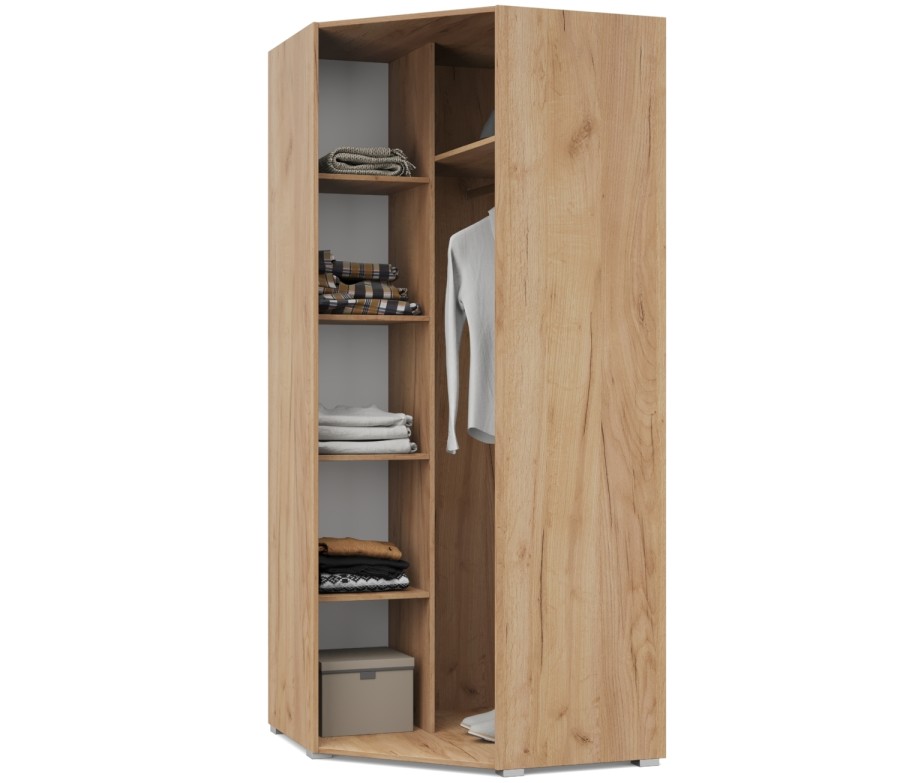 Виора В59 от Модериум — это угловой шкаф с полками и стационарной штангой для хранения одежды, белья из модульной серии Виора. Доступен в разных цветах: Дуб золотой/Графит, Дуб серый/Белый, что позволяет выбрать подходящий вариант под Ваш интерьер.