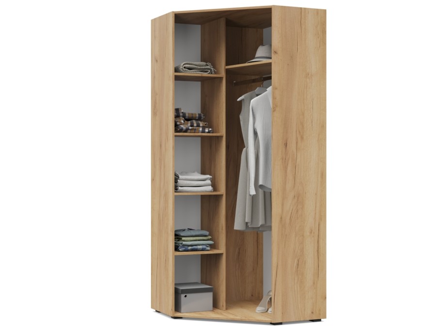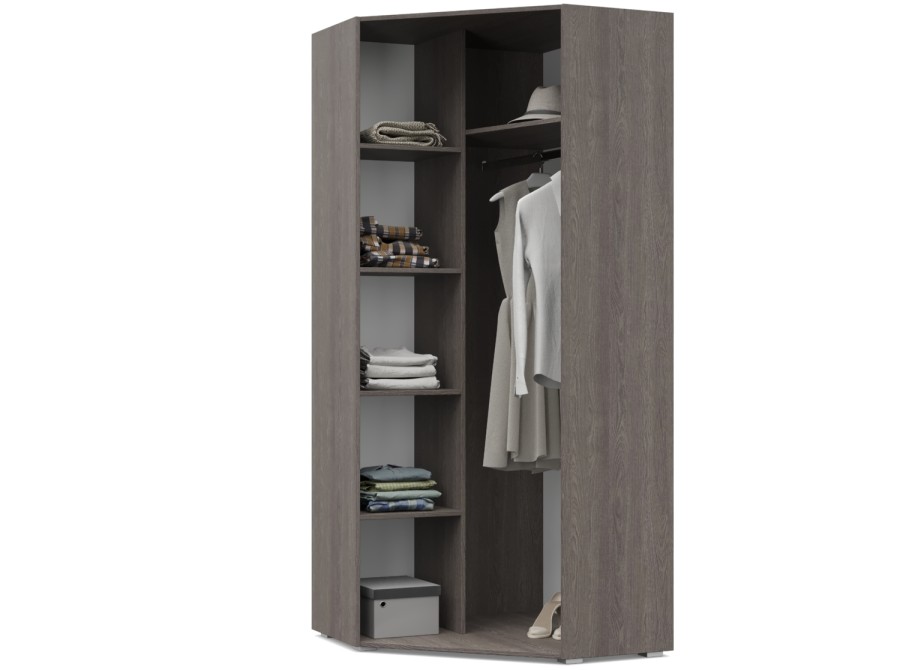 Карина К59 от Модериум — это угловой шкаф с полками и стационарной металлической штангой для хранения одежды, белья из модульной серии Карина. Доступен в разных цветах: Дуб золотой/Графит, Ясень Анкор темный/Ясень Анкор светлый, Кашемир, Дуб серый/Белый, что позволяет выбрать подходящий вариант под Ваш интерьер.