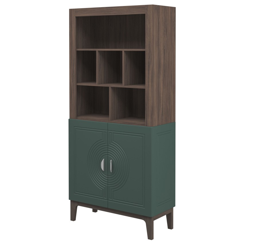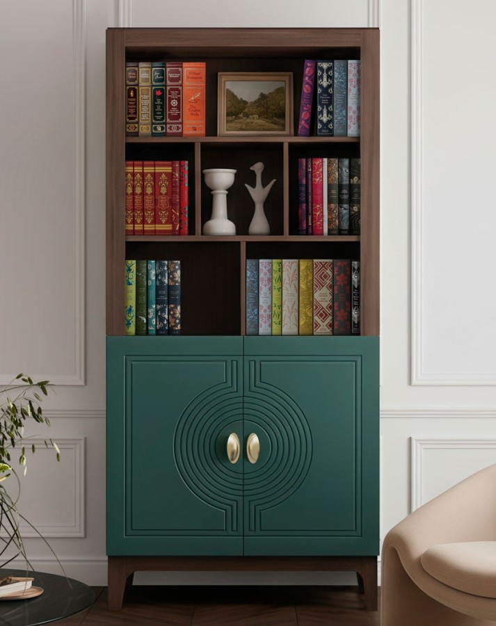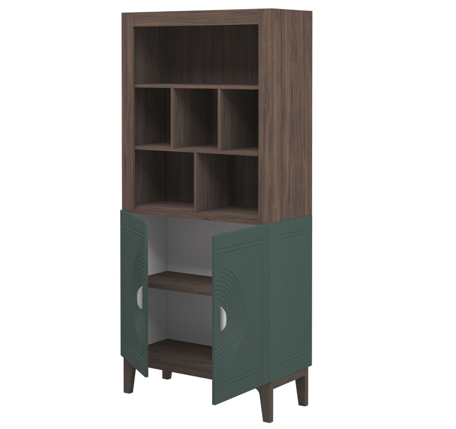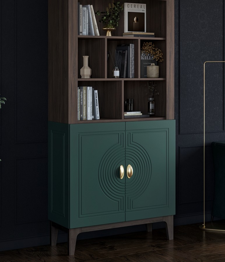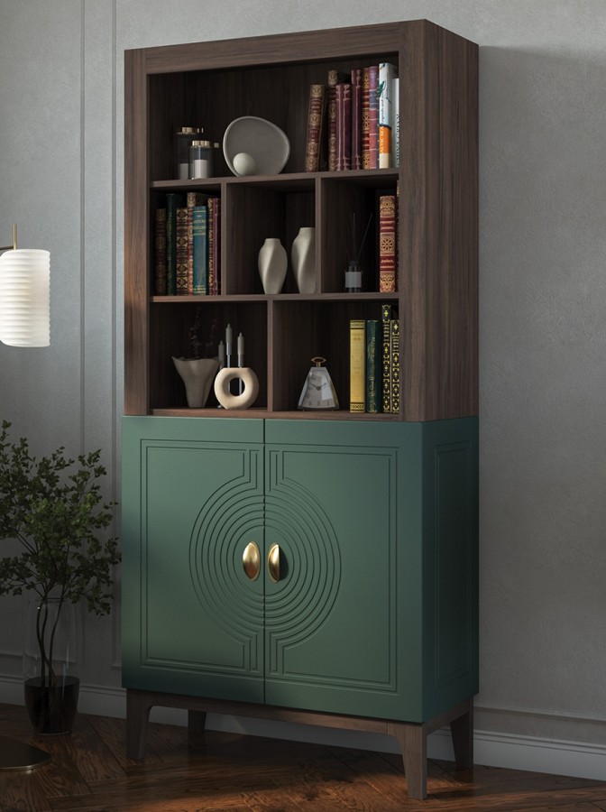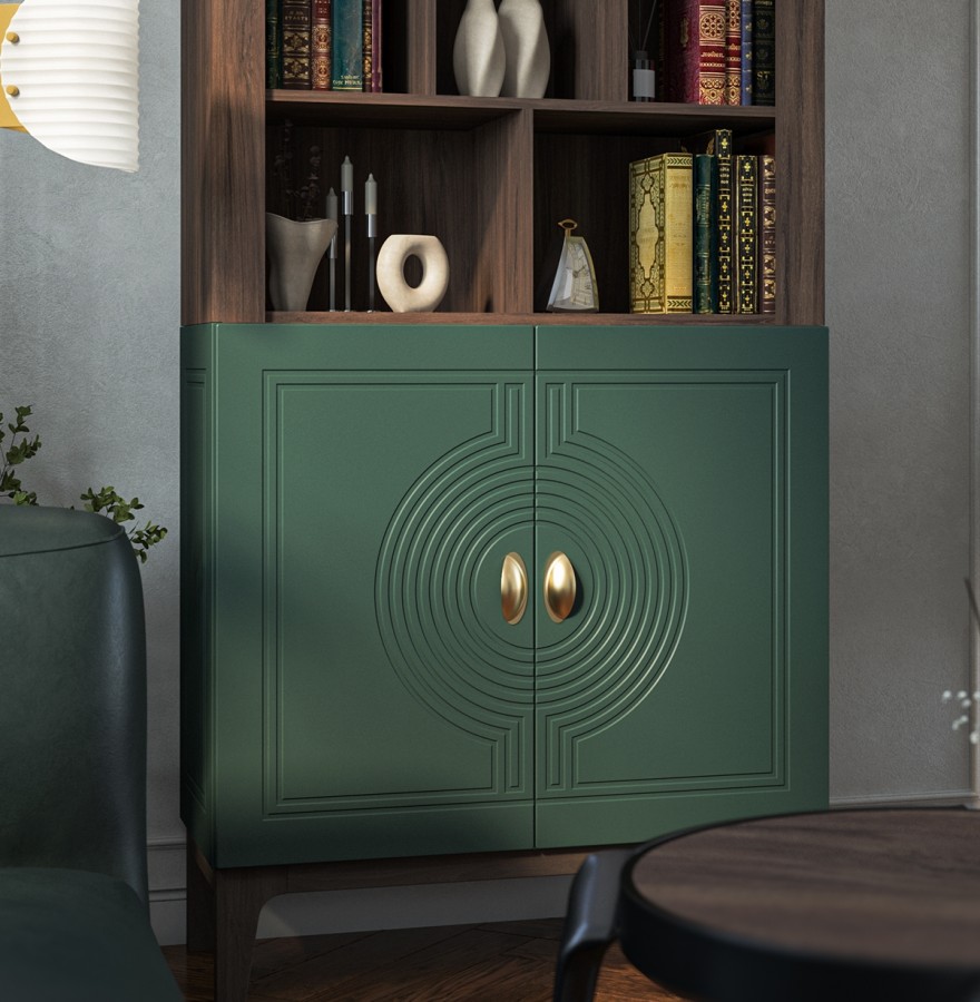 Сочетание насыщенного корпуса Гикори Прадо и акцентного фасада Комбу Грин формирует образ, в котором выразительность встречается с утончённостью. Тёплая древесная текстура наполняет интерьер уютом, а глубокий зелёный фасад придаёт пространству характер и индивидуальность.