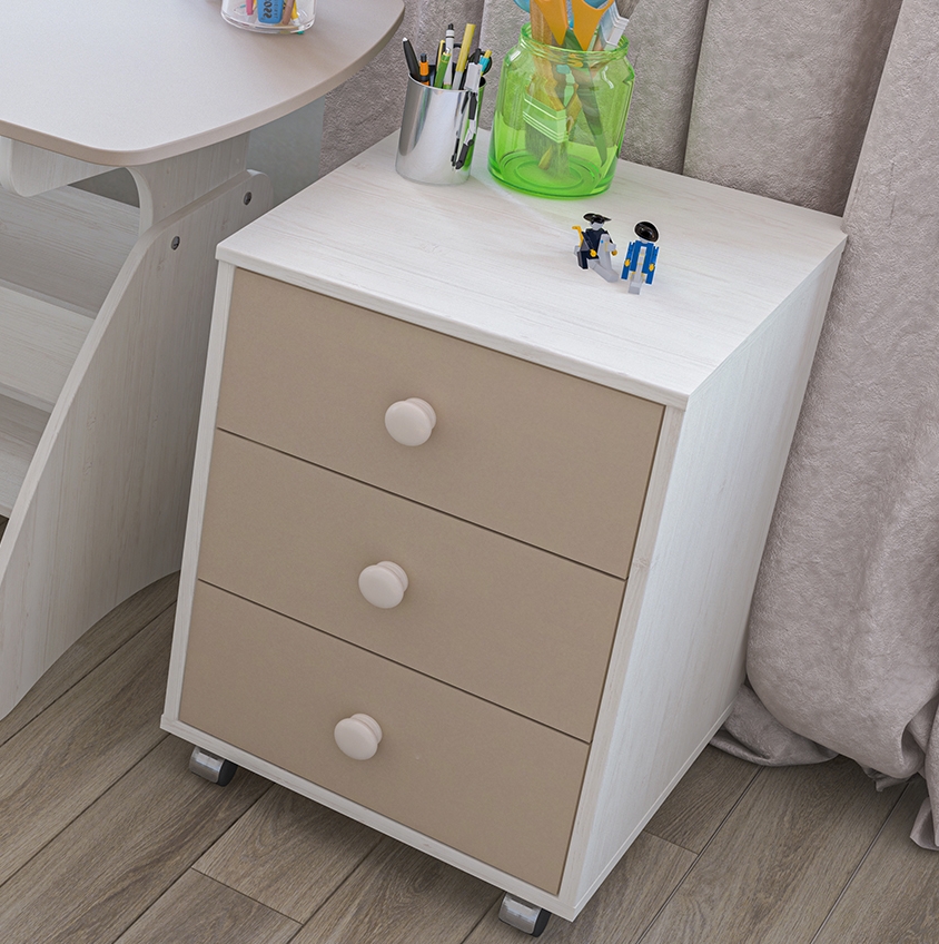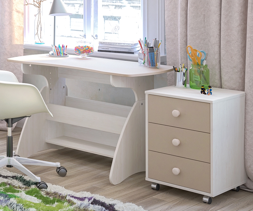 Мебель для молодежной комнаты Комби выполнена в приятных кремово-кофейных тонах, с сочетанием светлой фактуры дерева корпуса и матовых однотонных фасадов цвета «Капучино», что добавит теплоты и уюта в Ваш интерьер.