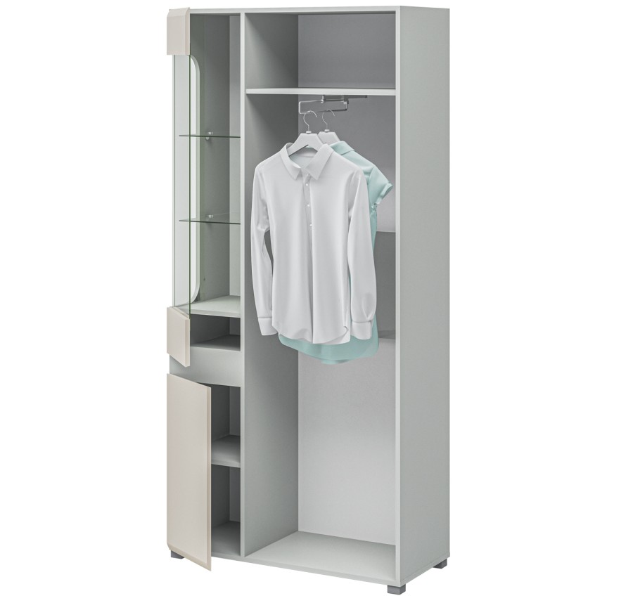 - Внутреннее наполнение: стационарная штанга для плечиков и полки.