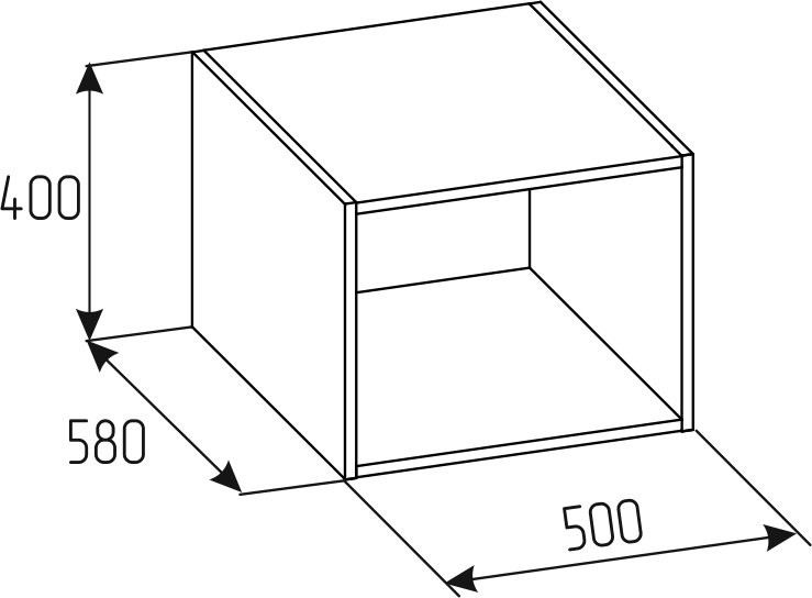 Корпус антресоли используется как дополнительное место дляхранения вещей и прочих предметов. Устанавливается поверх корпуса шкафа 500, 750, 1000 с глубиной 580мм.