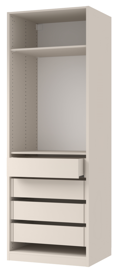 - Ящики устанавливаются с зазором 31 мм между ними, что позволит легко выдвигать и задвигать даже нагруженный вещами ящик без дополнительной фурнитуры.