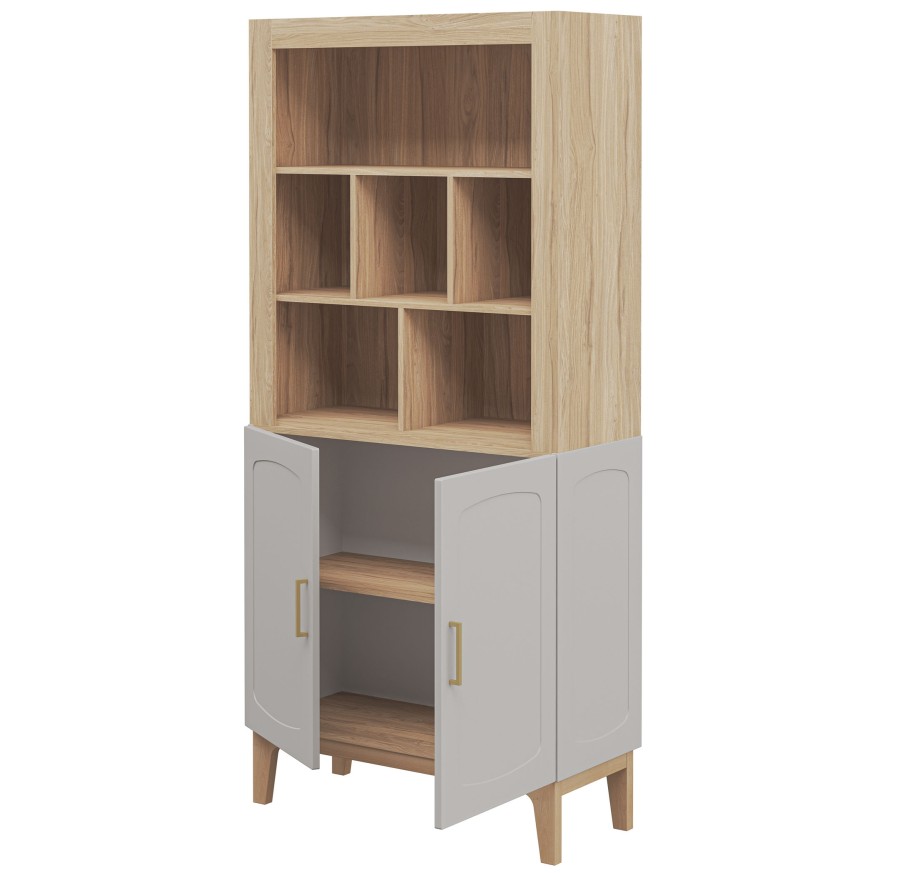 Изящные ножки из массива дерева придают композиции воздушность и визуально расширяют пространство, наполняя его светом. Инновационное матовое покрытие фасадов – это тактильное наслаждение, мягкая бархатистая поверхность, которая словно приглашает прикоснуться. Стеклянные витрины добавляют лёгкость и глубину, создавая эффект простора и ощущение порядка.