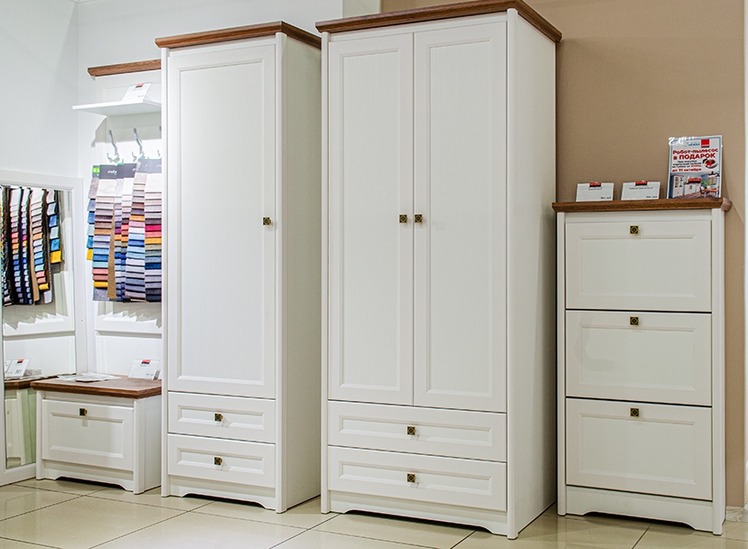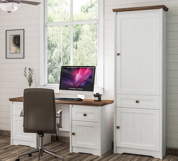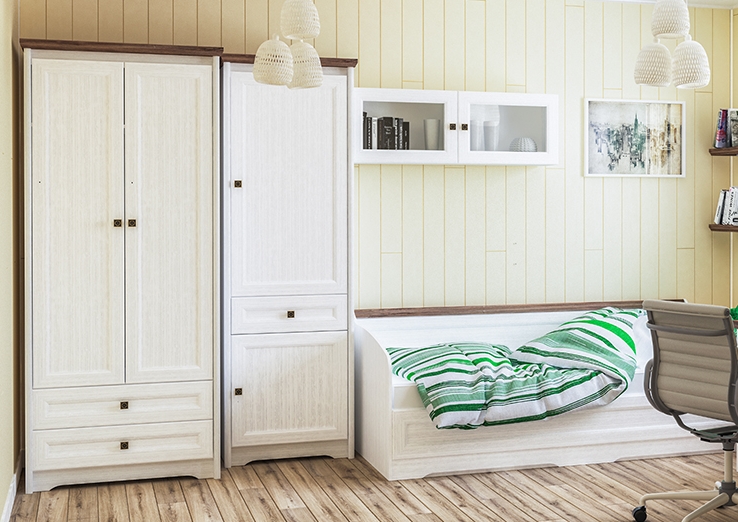Отличительной чертой стиля «лёгкого кантри» является применение в дизайне не более трёх основных цветов. В качестве основного выступает белый со структурой под дерево, а в противовес ему для создание контраста идёт тёмный цвет с текстурой дуба. Такая универсальная цветовая гамма мебели легко впишется в большинство интерьеров и будет идеальным решением для владельцев любой квартиры или дома.