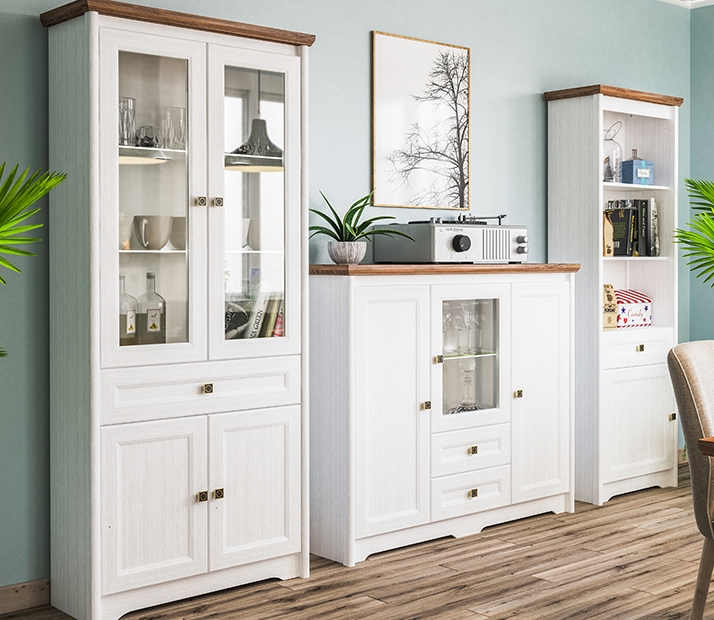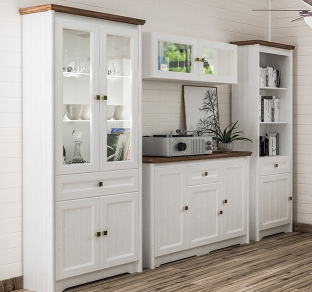 Отличительной чертой стиля «лёгкого кантри» является применение в дизайне не более трёх основных цветов. В качестве основного выступает белый со структурой под дерево, а в противовес ему для создание контраста идёт тёмный цвет с текстурой дуба. Такая универсальная цветовая гамма мебели легко впишется в большинство интерьеров и будет идеальным решением для владельцев любой квартиры или дома.