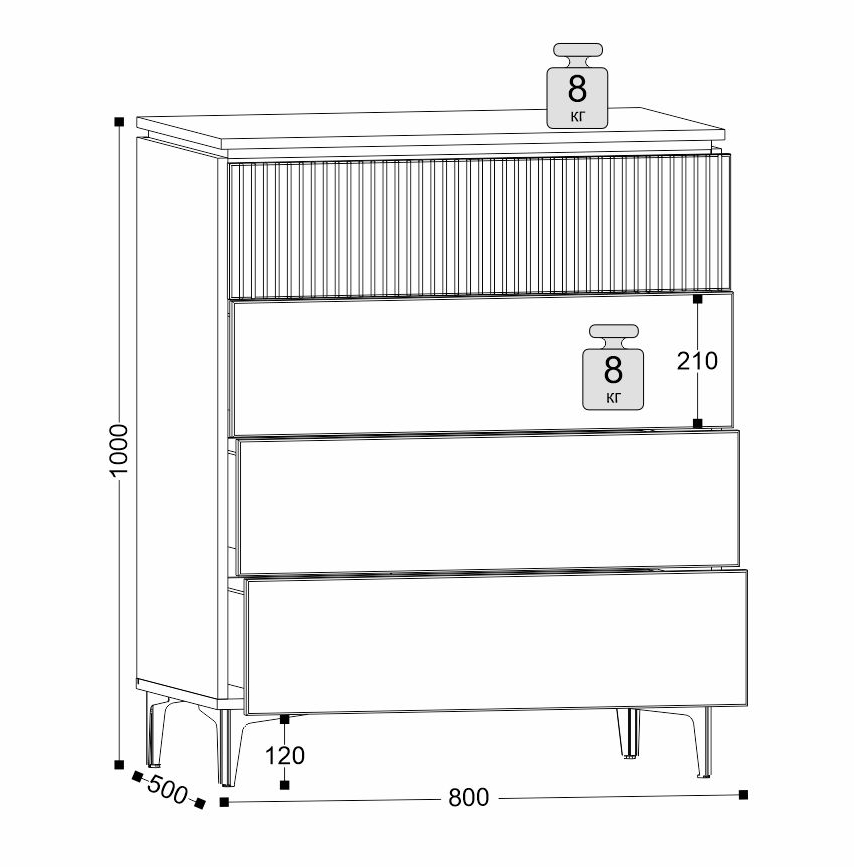 - Четыре выдвижных ящика с шариковыми направляющими.