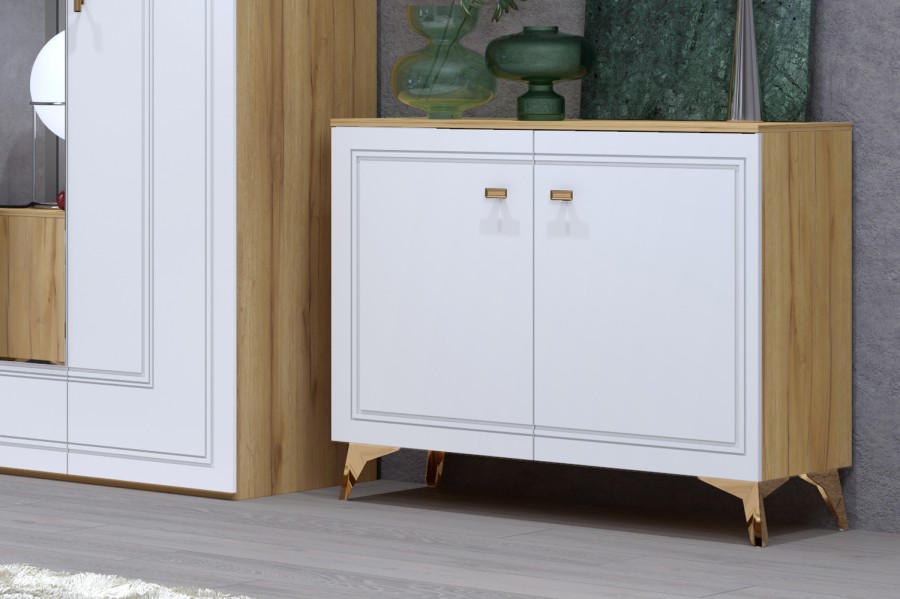 Исполнение: корпус ЛДСП дуб золотистый + фасады МДФ глянец белый.