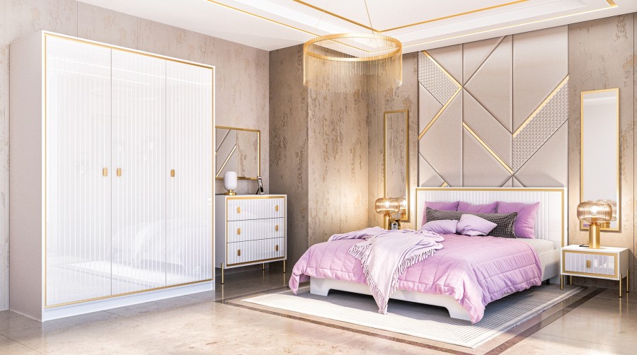 Серия ЛЮКСОР – мебель для спальни и гостиной в классическом стиле фабрики Неман. Люксор – это игра света и тени в гранях фасада; безупречное сочетание глянца, зеркальных отражений и приглушённого чарующего сияния металла.