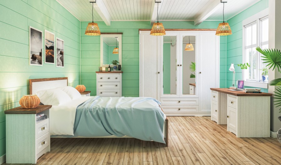 Отличительной чертой стиля «лёгкого кантри» является применение в дизайне не более трёх основных цветов. В качестве основного выступает белый со структурой под дерево, а в противовес ему для создание контраста идёт тёмный цвет с текстурой дуба. Такая универсальная цветовая гамма мебели легко впишется в большинство интерьеров и будет идеальным решением для владельцев любой квартиры или дома.