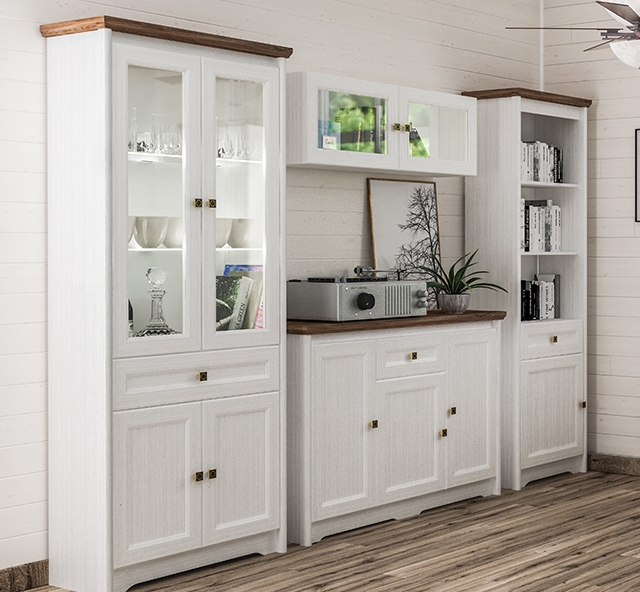 Отличительной чертой стиля «лёгкого кантри» является применение в дизайне не более трёх основных цветов. В качестве основного выступает белый со структурой под дерево, а в противовес ему для создание контраста идёт тёмный цвет с текстурой дуба. Такая универсальная цветовая гамма мебели легко впишется в большинство интерьеров и будет идеальным решением для владельцев любой квартиры или дома.