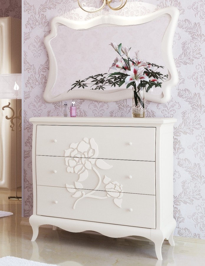 - Фасад шкафов по периметру обрамлен массивной волнообразной рамкой.