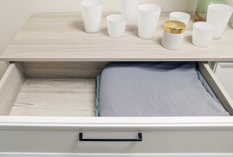 Интересный штрих — торцевые стеллажи для завершения шкафной группы. Они станут отличным дополнением к глубоким и неглубоким шкафам. Установка стеллажей возможна с любого торца шкафа.