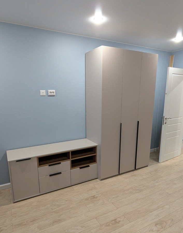 - Особенности шкафа-купе: внутренние выдвижные ящики. В секцию с правой стороны есть возможность поставить либо штангу, либо полки (входит в комплектацию изделия).