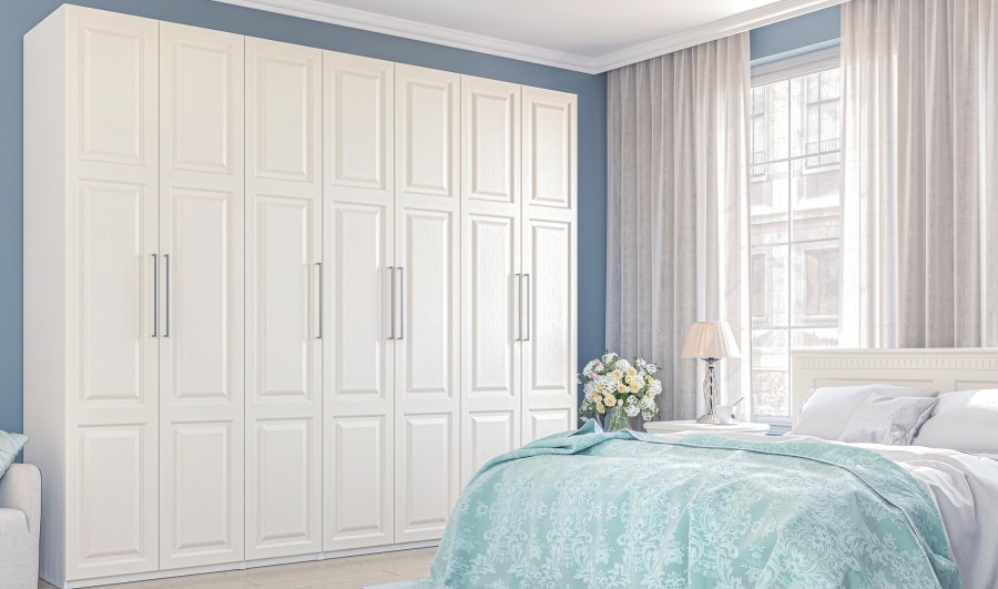 - Вместительные гардеробные шкафы снабжены системой плавного закрывания.