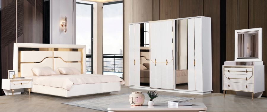«Стиль» Модульный спальный гарнитур (белый+золото)